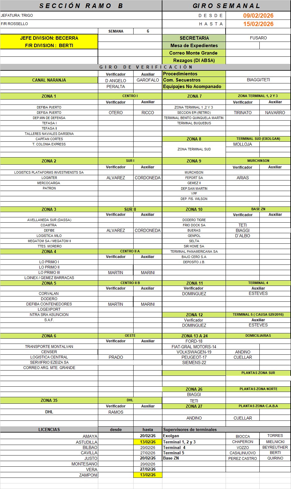 El Centro Despachantes de Aduana (CDA) informa a sus asociados los Giros de los Verificadores, válidos desde el 09/02/26 al 22/02/26