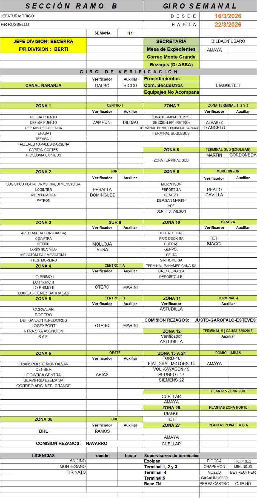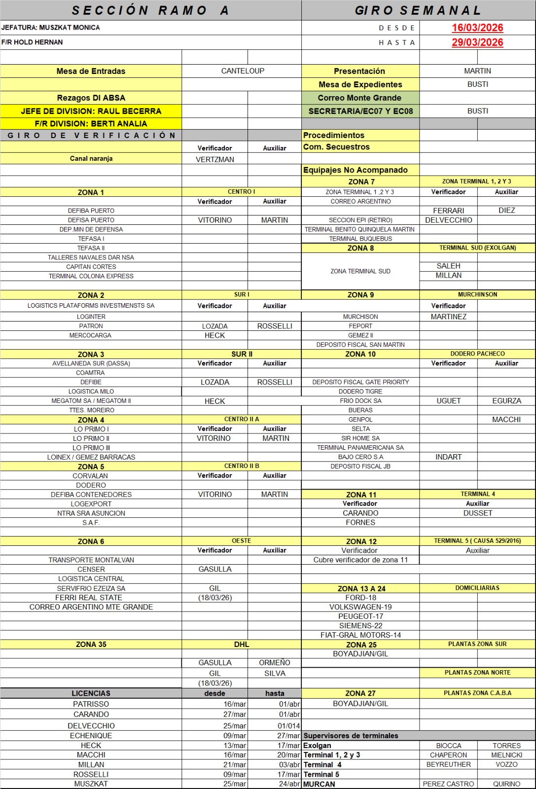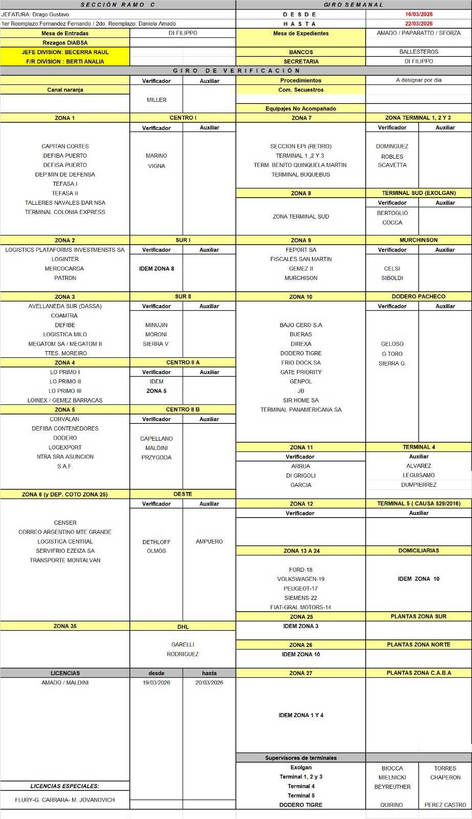 El Centro Despachantes de Aduana (CDA) informa a sus asociados los Giros de los Verificadores, válidos desde el 16/03/26 al 22/03/26