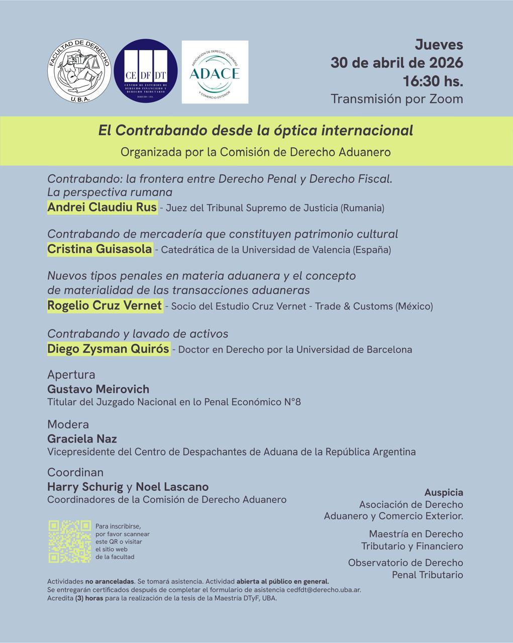 El encuentro se llevará a cabo el día jueves 30 de abril de 2026 a las 16:30 h, en modalidad virtual a través de la plataforma Zoom.
