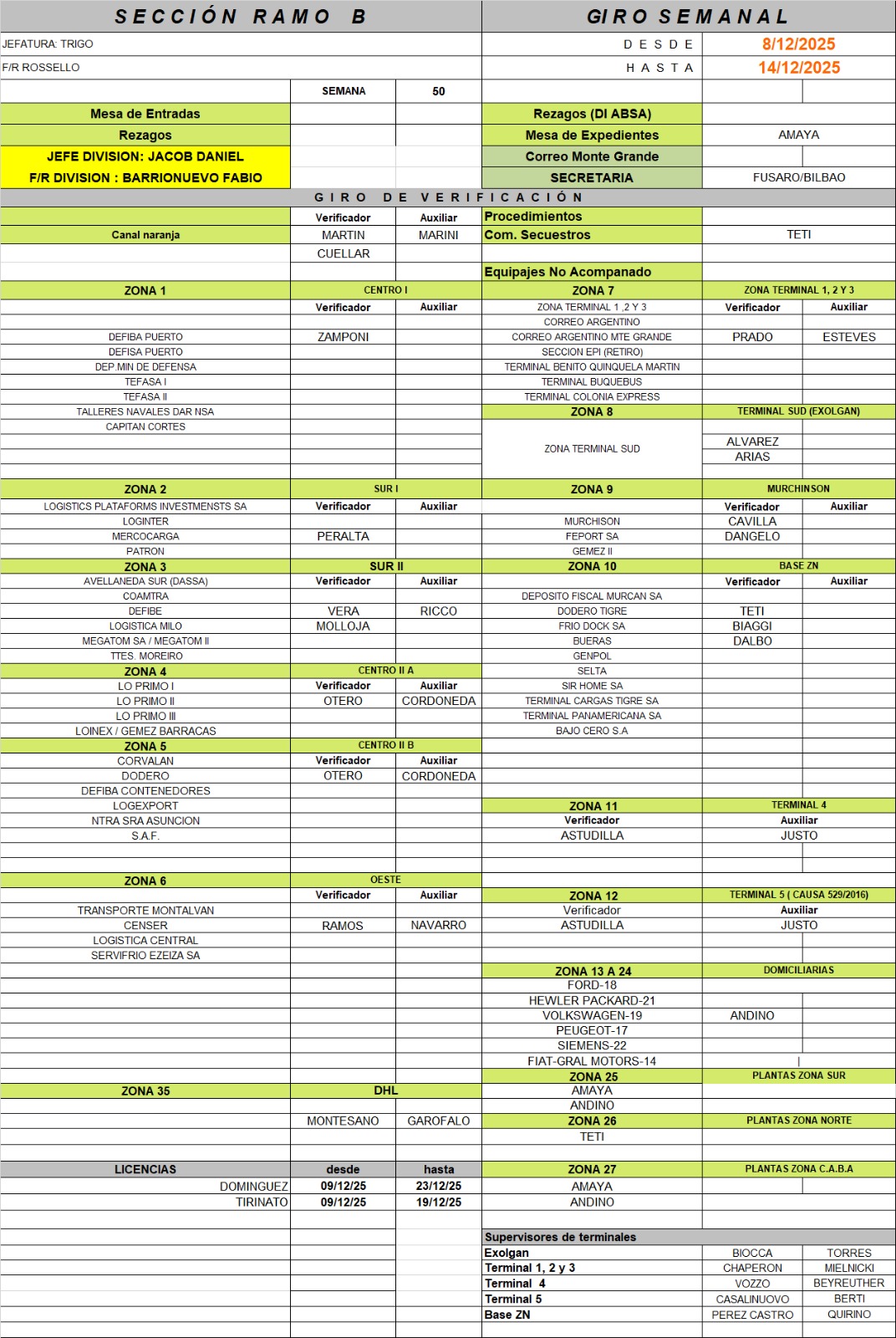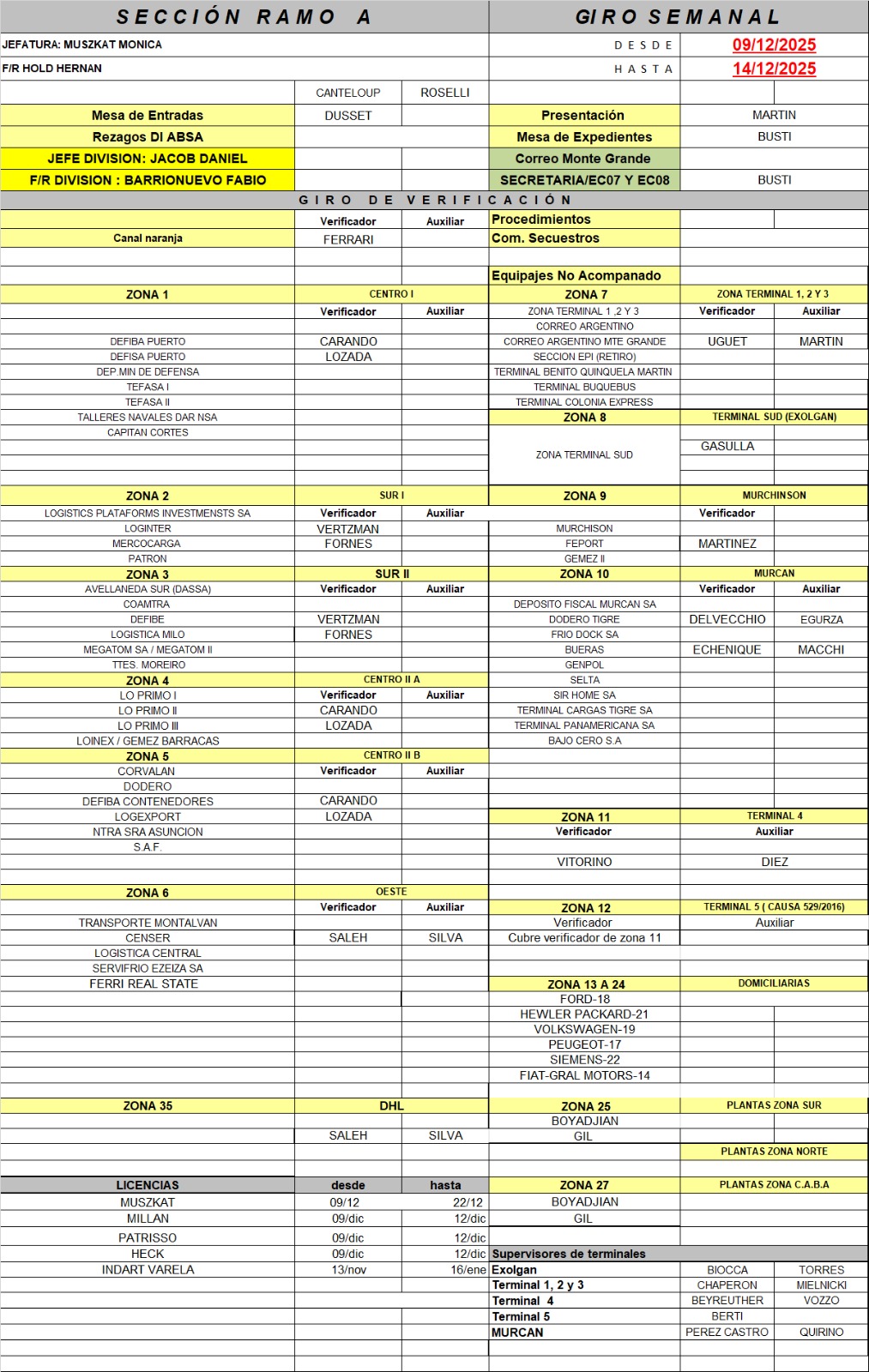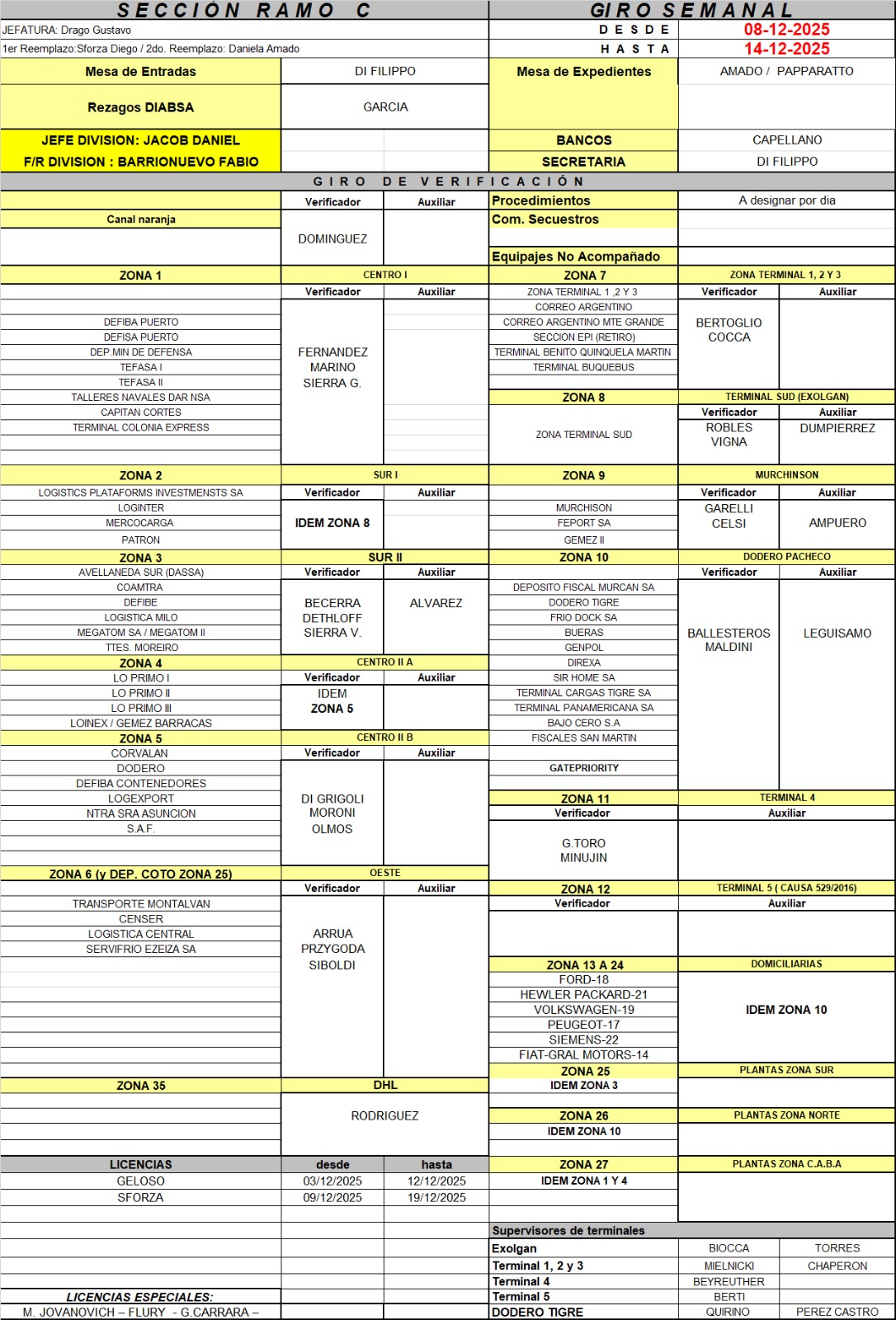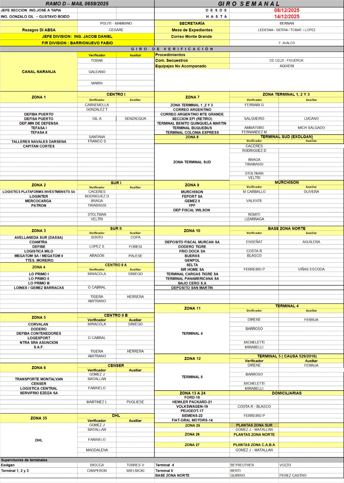 El Centro Despachantes de Aduana (CDA) informa a sus asociados los Giros de los Verificadores, válidos desde el 17/11/25 al 23/11/25.