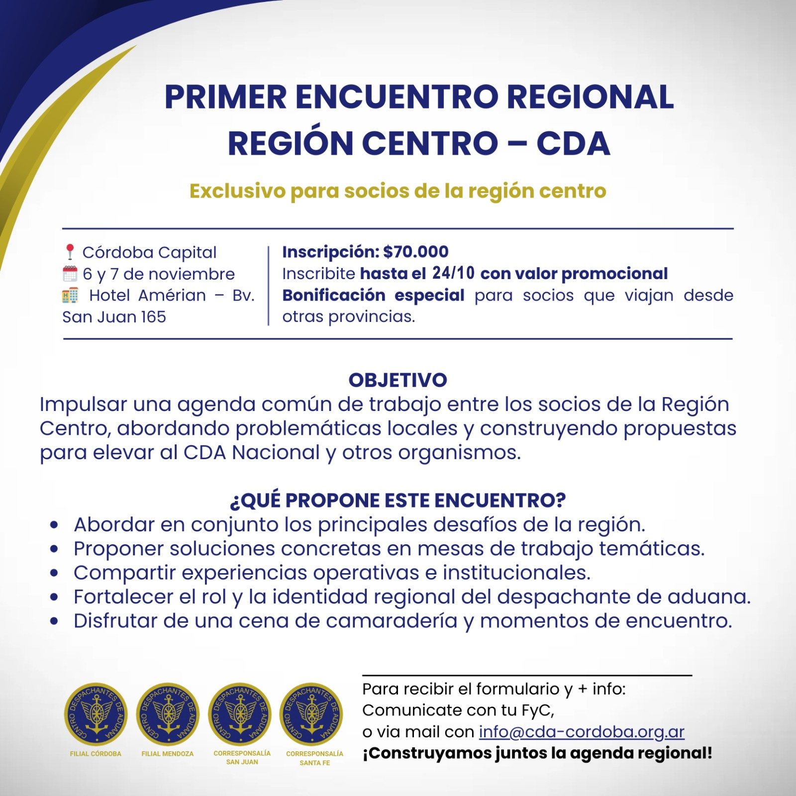 El próximo 6 y 7 de noviembre del corriente se llevará a cabo, por primera vez, el Primer Encuentro Regional impulsado por la Región Centro de nuestra Institución, el cual tiene como objetivo generar un espacio de análisis e intercambio entre los socios de la región —incluyendo Filiales, Corresponsalías y Delegaciones.