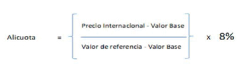 una alícuota de derecho de exportación de acuerdo a un esquema móvil calculado